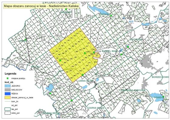Mapa przygotowanego dla Was obszaru w Nadleśnictwie Kaliska: